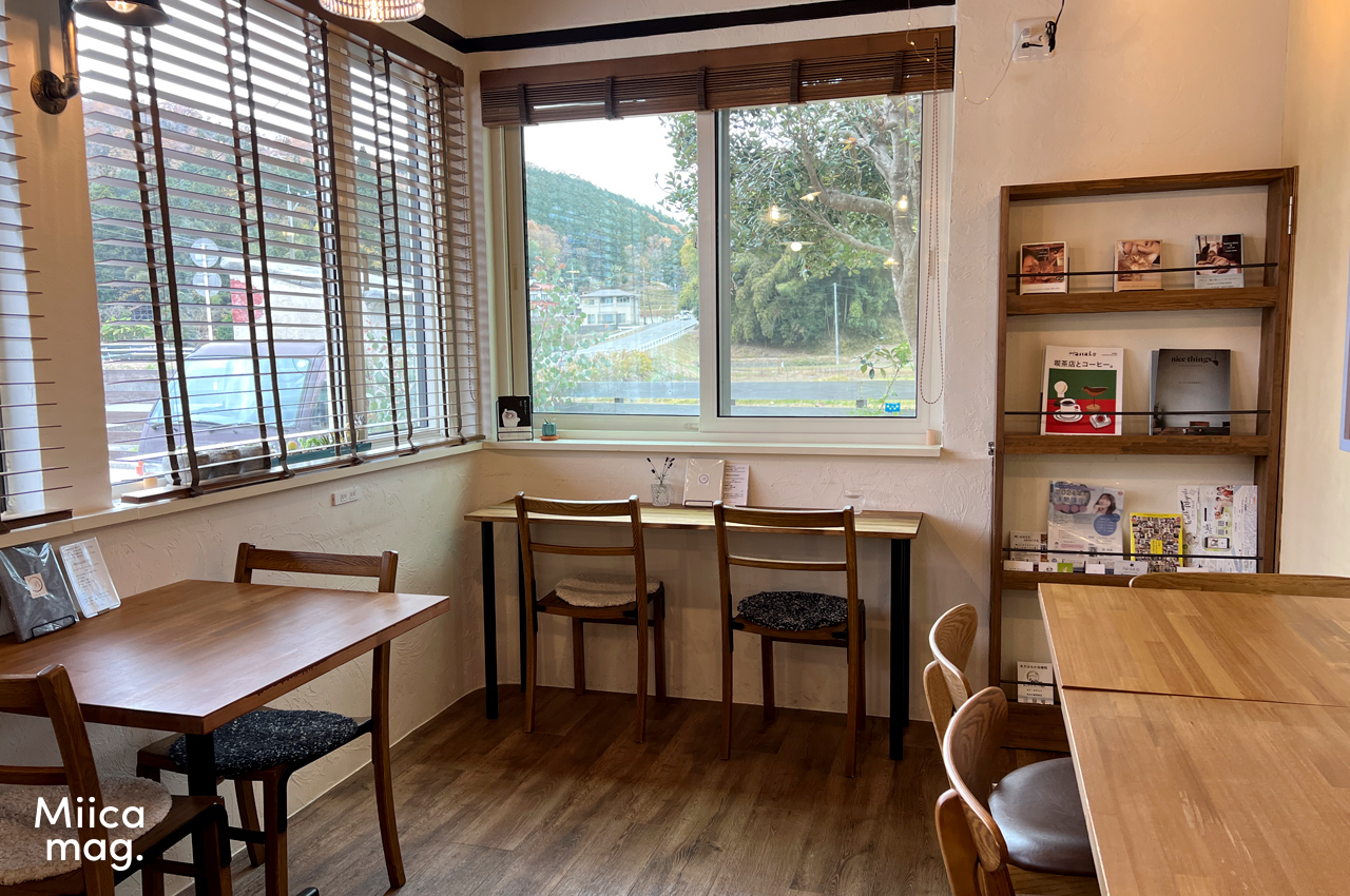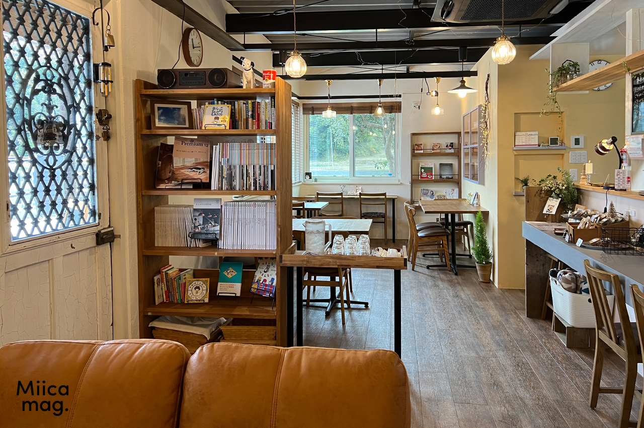 棚にはコーヒーやカフェ、猫に関する本が置いてあって癒されます。