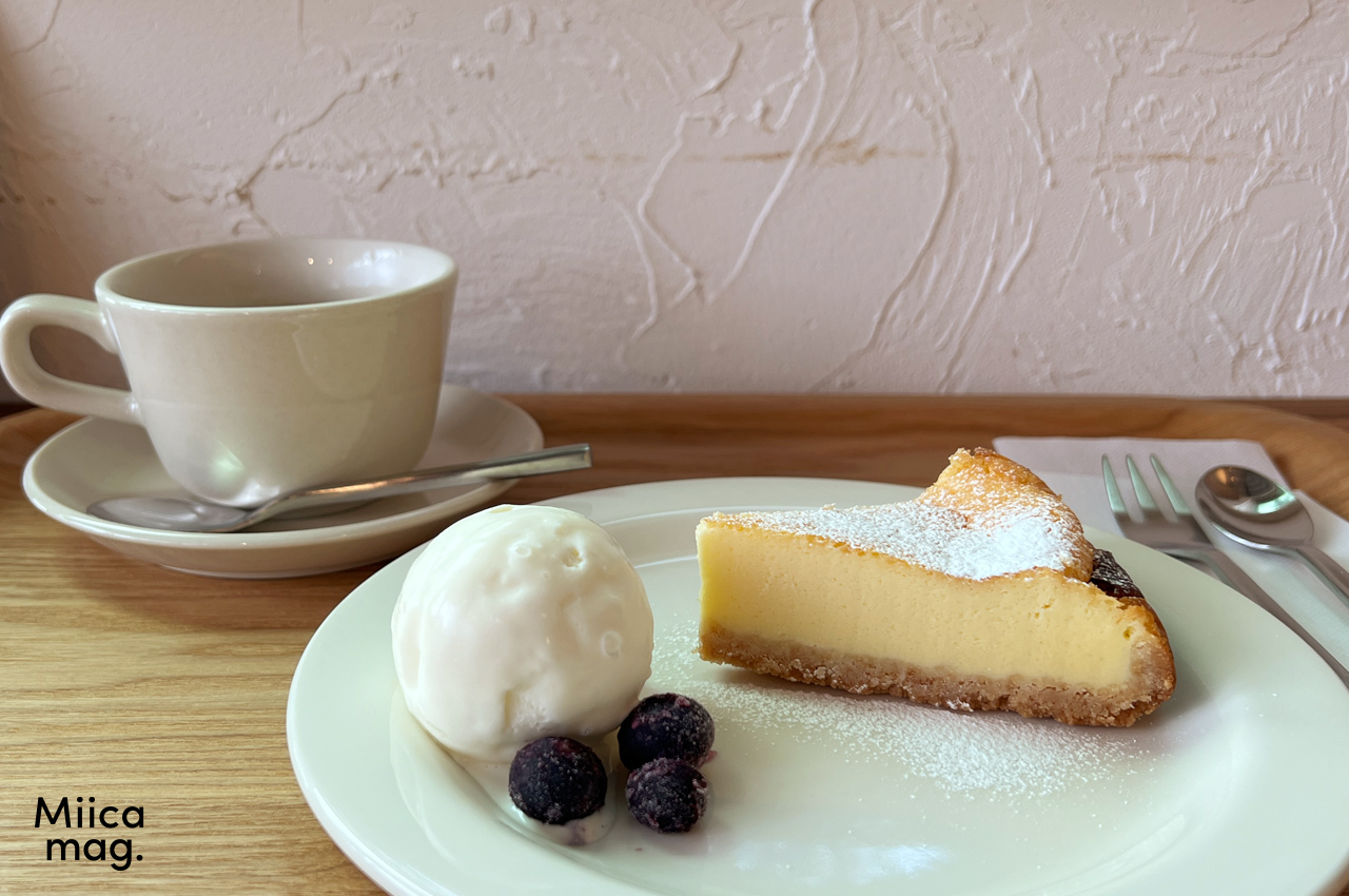 ずっしりと重めの濃厚なチーズケーキにサクサクのタルト生地。