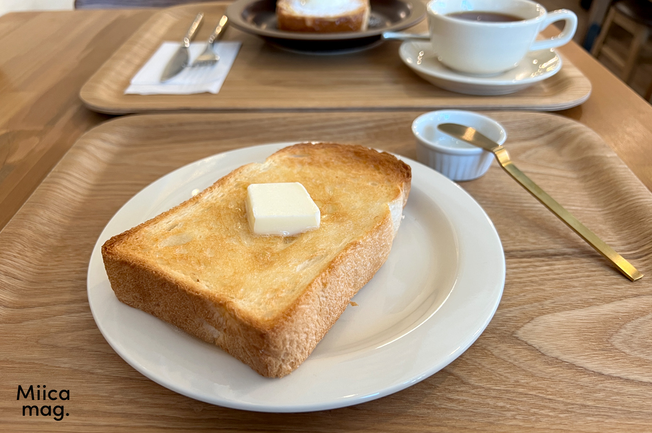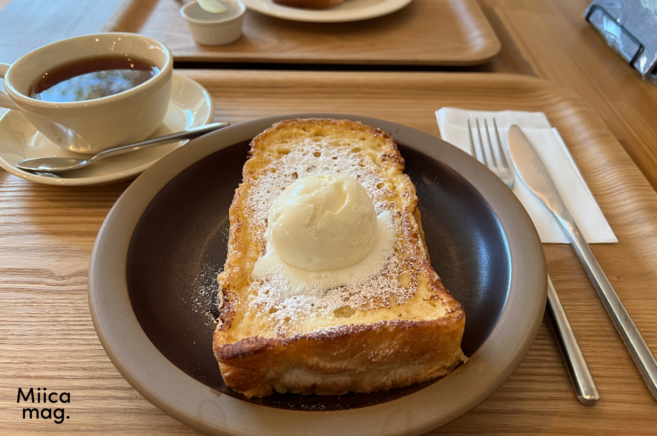対角から撮ったフレンチトーストアイスクリーム添えとバタートースト。