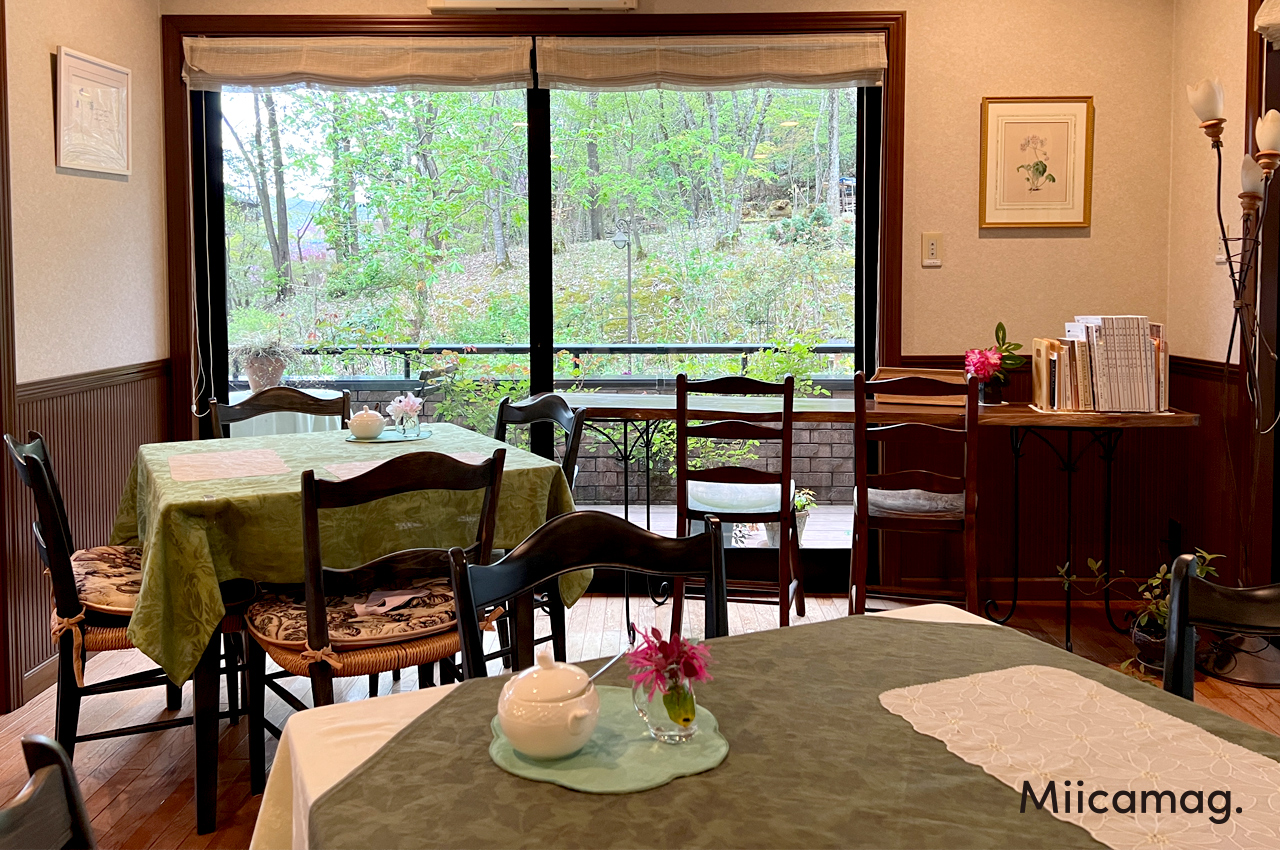 各テーブルには花が活けてあり、心地よい音楽が流れる空間はまさに癒し。